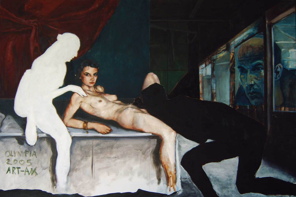 „Ich frage mich, ob Putin in letzter Zeit überhaupt noch Sex hat. Und wenn ja, mit wem?“ – „Schau dir seine rechte Hand an, schlaff, komplett überanstrengt.“ – „Manchmal stelle ich mir vor, wie Putin abends zu Bett geht, und frage mich, wie es ihm gelingt einzuschlafen und wie es ist, am nächsten Morgen aufzuwachen.“ – „Im ersten Moment siehst du die Sonne durchs Fenster blinzeln und denkst, was für ein wundervoller Morgen. Du könntest im Oktoberdunst durchs feuchte Gras einer Apfelplantage schlendern und von deiner ersten Liebe träumen, die ebenfalls an einem sonnigen Oktobertag begonnen hat. Aber dann kommt der jähe Elektroschock: Herz, Kopf, rote Ohren. Oh Scheiße, ich Zauberlehrling hab‘ ja ‘nen Krieg angefangen, da muss ich mich auch heute ums Töten und Zerstören kümmern. Wie peinlich!“ – „Und zur Ablenkung holt er sich erst mal einen runter.“ – „Und schaut dabei einen Porno auf einem riesigen Bildschirm auf der gegenüberliegenden, zehn Meter entfernten Wand.“ – „Milf.“ – „Gay?“ – „Nee, kein Porno, eher Pinocchio, Heidi oder Biene Maja, so eine regressive Phase vor dem Eisbaden und dem Eiweißfrühstück. Pornos nur abends vorm Einschlafen.“